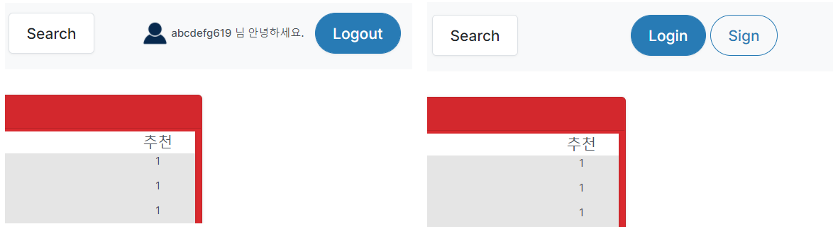 5 : main page로 이동한다. 로그아웃 된 것을 확인 할 수 있다.