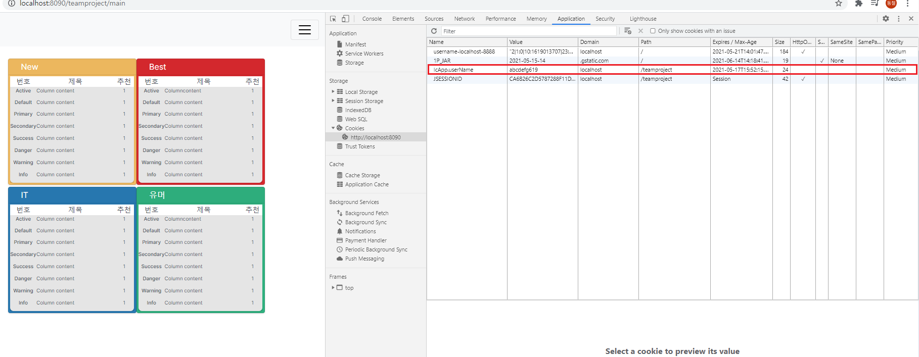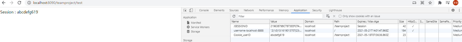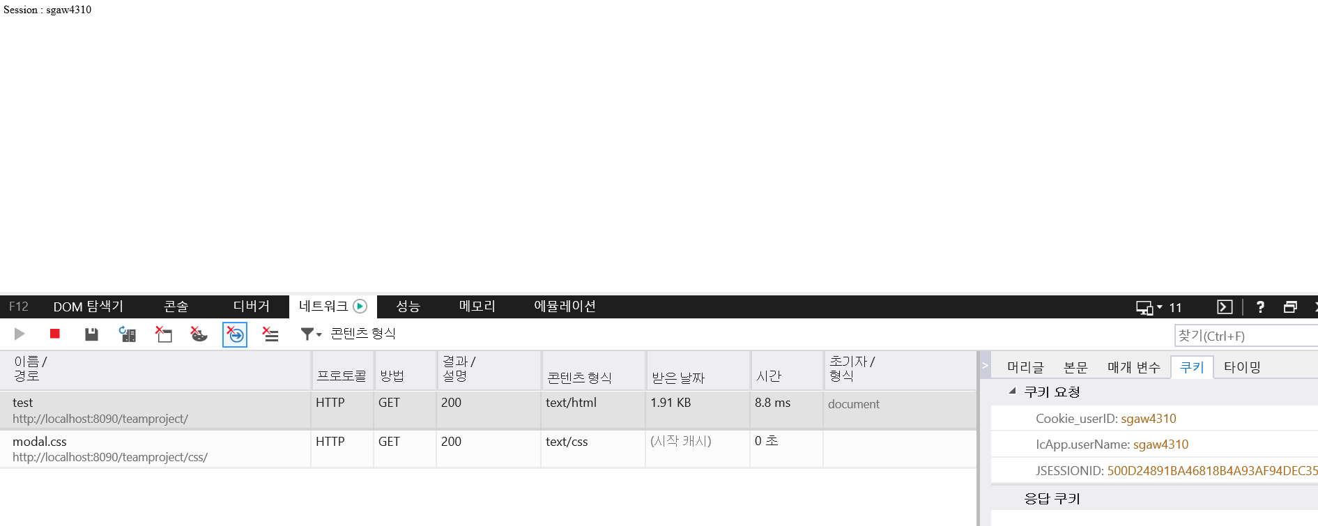 결과페이지에서 생성된 쿠키를 확인 할 수 있다.