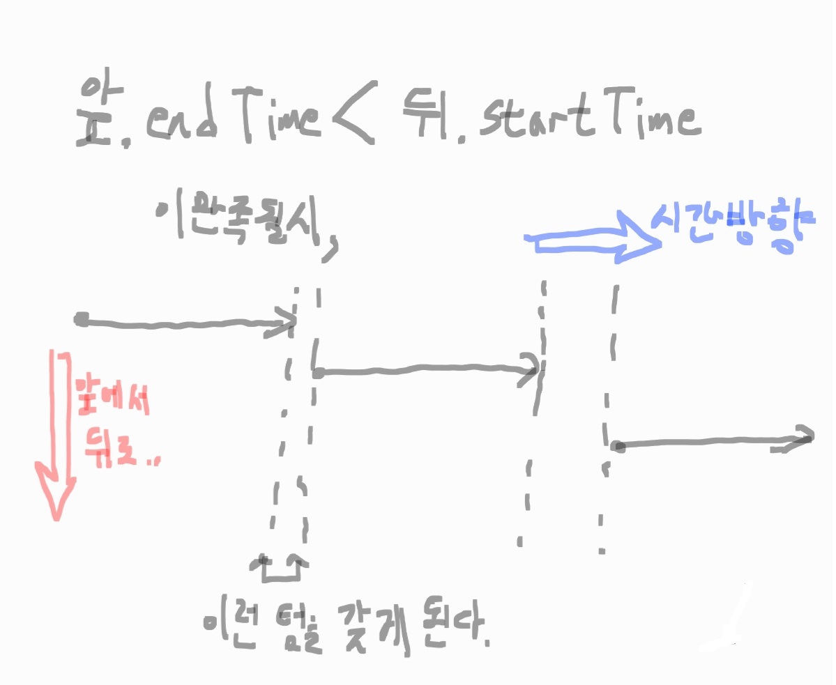 뒤.startTime > 앞.endTime 이 만족된다면 정상적인것 , 불만족시 false 리턴.