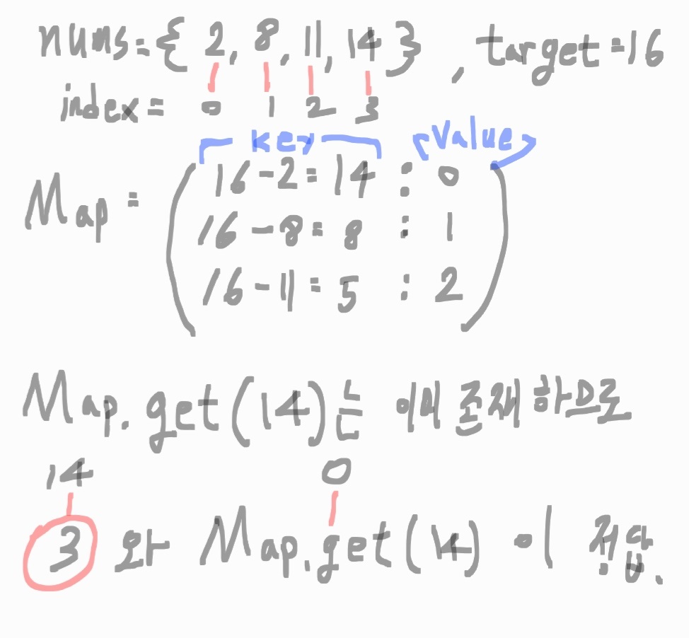 2) Map(Array 각각의 값)=value가 이미 존재하면 그것은 two sum에 적합하므로